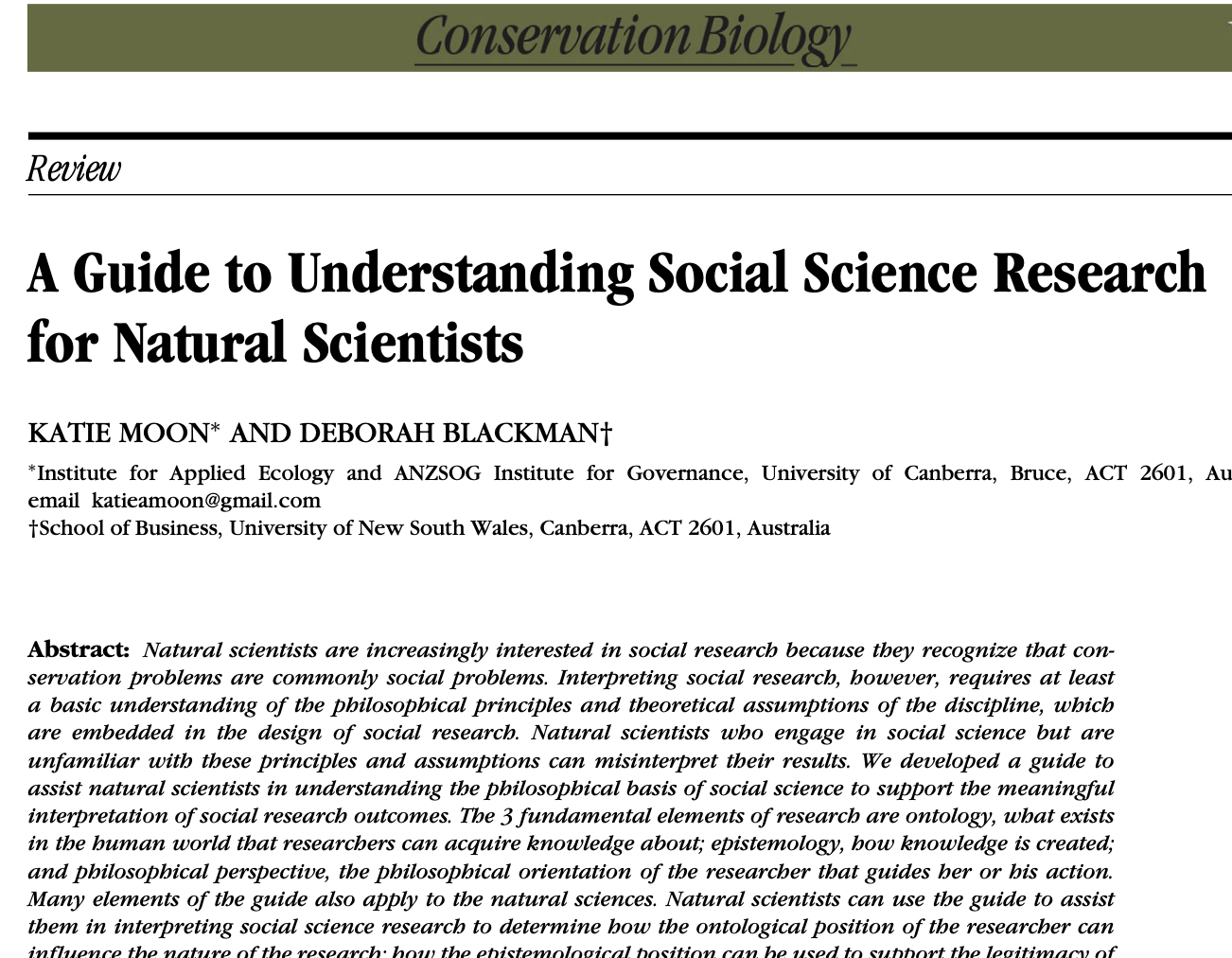 The Special Feature led by Sutherland, Dicks, Everard, and Geneletti (Methods Ecology and Evolution, 9, 7–9, 2018) sought to highlight the importance of “qualitative methods” for conservation. The intention is welcome, and the collection makes many important contributions. Yet, the articles presented a limited perspective on the field, with a focus on objectivist and instrumental methods, omitting discussion of some broader philosophical and methodological considerations crucial to social science research. Consequently, the Special Feature risks narrowing the scope of social science research and, potentially, reducing its quality and usefulness. In this article, we seek to build on the strengths of the articles of the Special Feature by drawing in a discussion on social science research philosophy, methodology, and methods. We start with a brief discussion on the value of thinking about data as being qualitative (i.e., text, image, or numeric) or quantitative (i.e., numeric), not methods or research. Thinking about methods as qualitative can obscure many important aspects of research design by implying that “qualitative methods” somehow embody a particular set of assumptions or principles. Researchers can bring similar, or very different, sets of assumptions to their research design, irrespective of whether they collect qualitative or quantitative data. We start with a brief discussion on the value of thinking about data as being qualitative (i.e., text, image, or numeric) or quantitative (i.e., numeric), not methods or research. Thinking about methods as qualitative can obscure many important aspects of research design by implying that “qualitative methods” somehow embody a particular set of assumptions or principles. Researchers can bring similar, or very different, sets of assumptions to their research design, irrespective of whether they collect qualitative or quantitative data. We clarify broad concepts, including philosophy, methodology, and methods, explaining their role in social science research design. Doing so provides us with an opportunity to examine some of the terms used across the articles of the Special Feature (e.g., bias), revealing that they are used in ways that could be interpreted as being inconsistent with their use in a number of applications of social science. We provide worked examples of how social science research can be designed to collect qualitative data that not only understands decision-making processes, but also the unique social–ecological contexts in which it takes place. These examples demonstrate the importance of coherence between philosophy, methodology, and methods in research design, and the importance of reflexivity throughout the research process. We conclude with encouragement for conservation social scientists to explore a wider range of qualitative research approaches, providing guidance for the selection and application of social science methods for ecology and conservation.